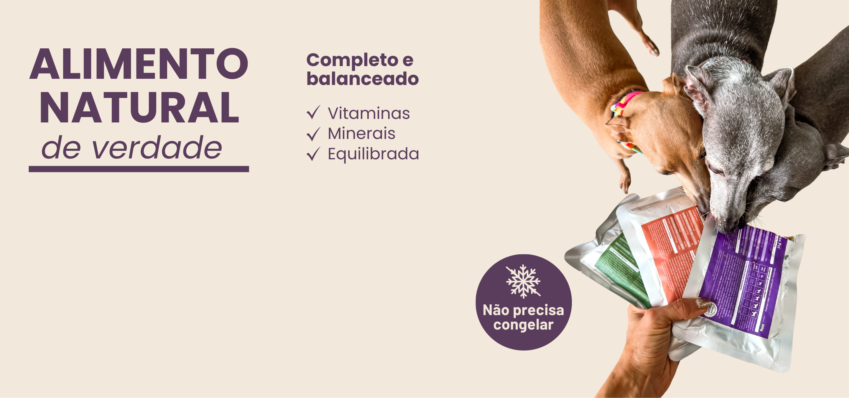 Seu pet recebe uma refeição natural, segura e pensada pra ele de verdade. Simples assim.